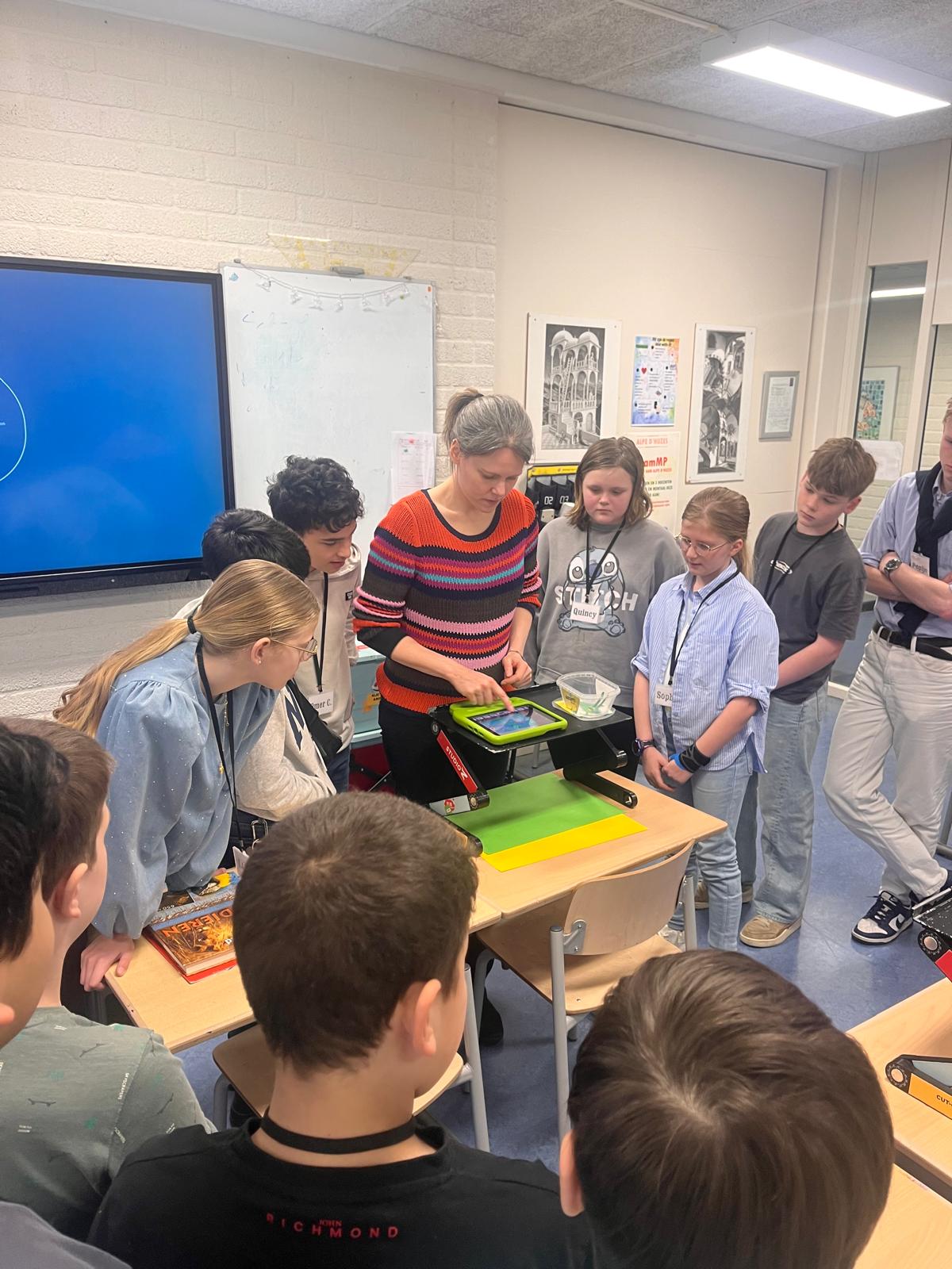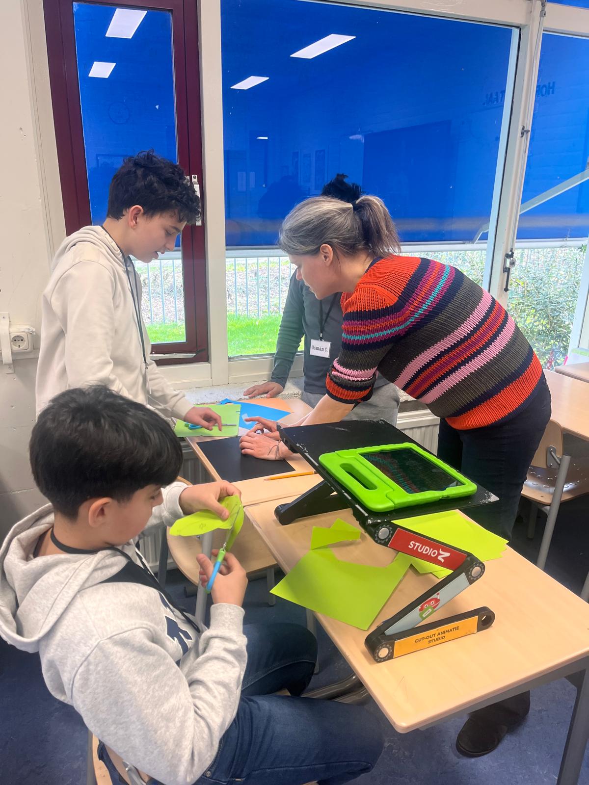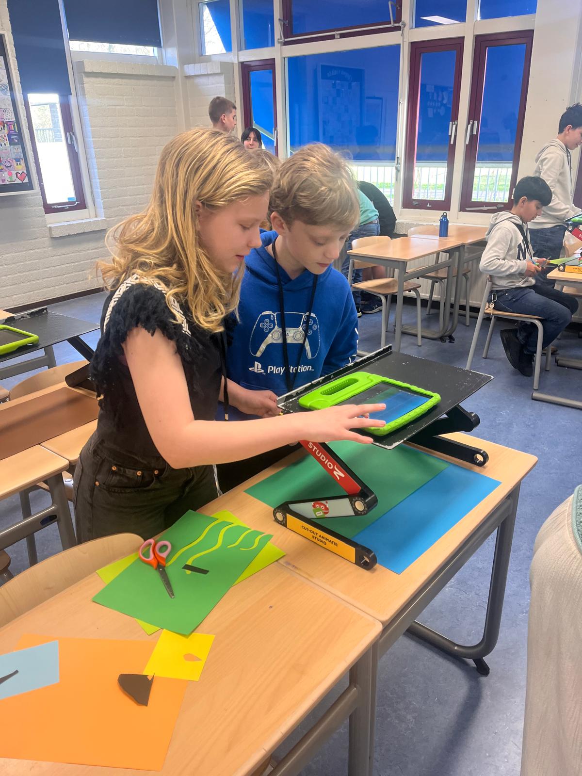 Daarna gingen de leerlingen zelf aan de slag met iPads. Met stop motion en een greenscreen maakten ze hun eigen film, waarbij ze zelf de hoofdrol speelden. Creatief experimenteren, samenwerken en vooral veel plezier! Deze les kon georganiseerd worden door de opbrengst van de Gelre Fietstocht (september 2025)